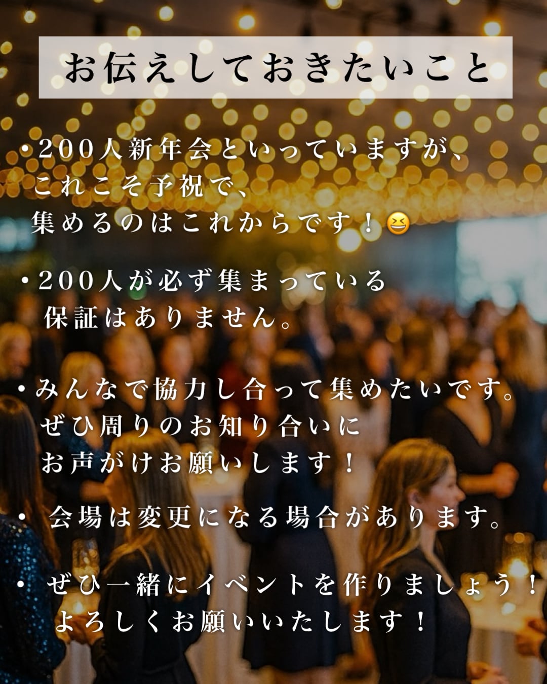 200人のエネルギーでお互いの未来を祝い合う素晴らしい一日を共に過ごしましょう。