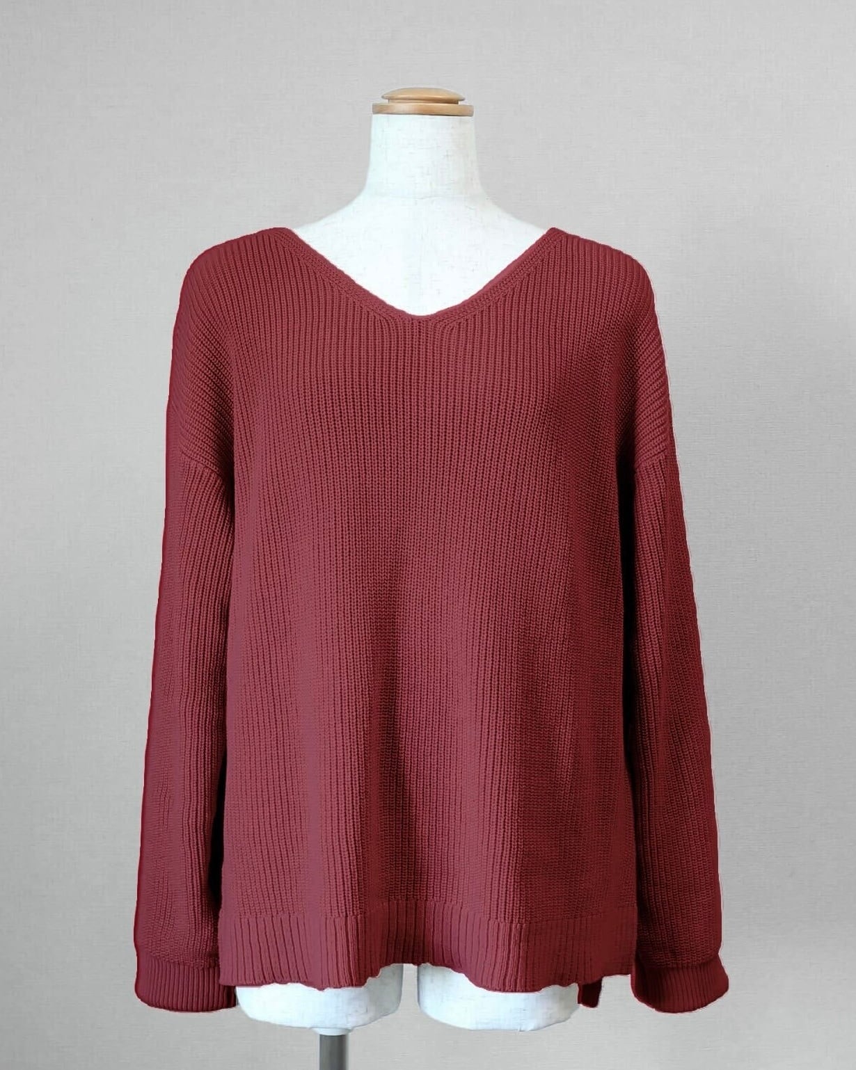 Vネックニットは、深くなりすぎないようにデザインしましたが、