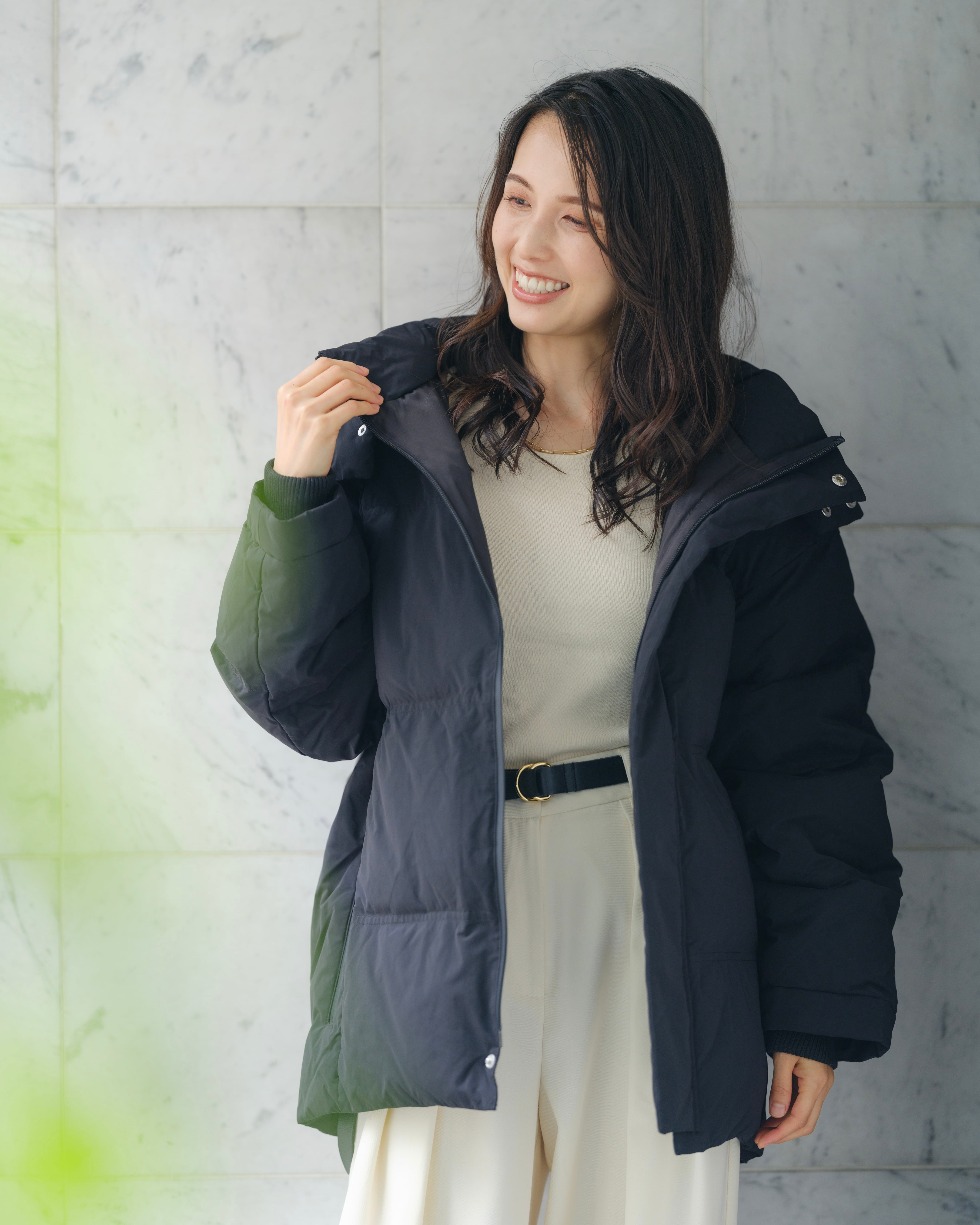 生地は水をよく弾くので、雨や雪の日も着ていただけます。